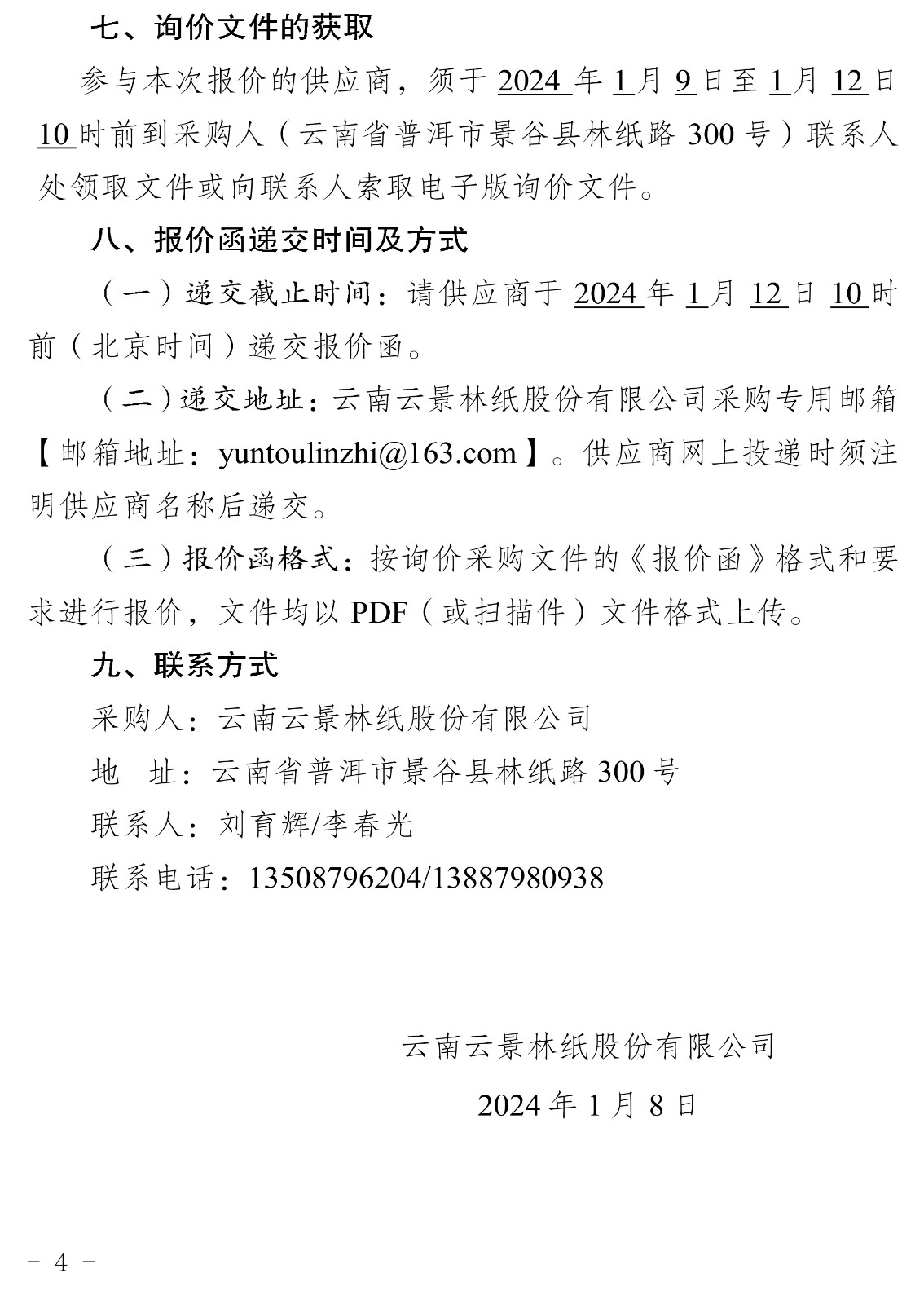 云南云景林紙股份有限公司2024年濾套代儲采購公告