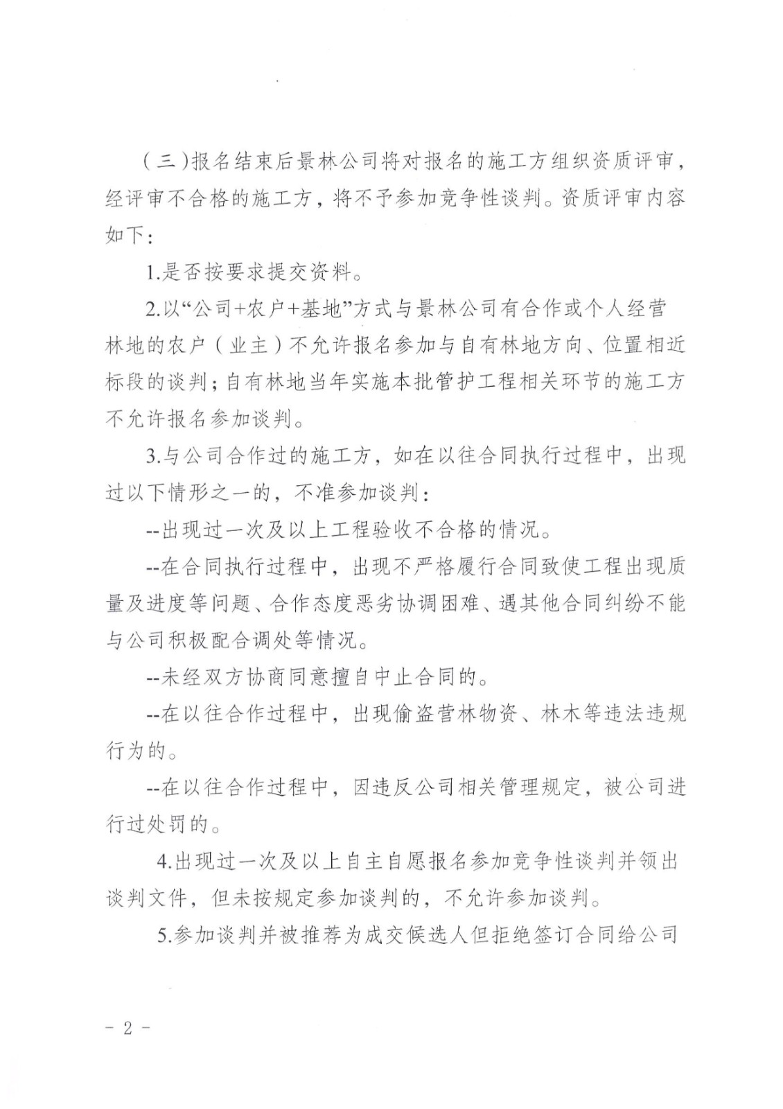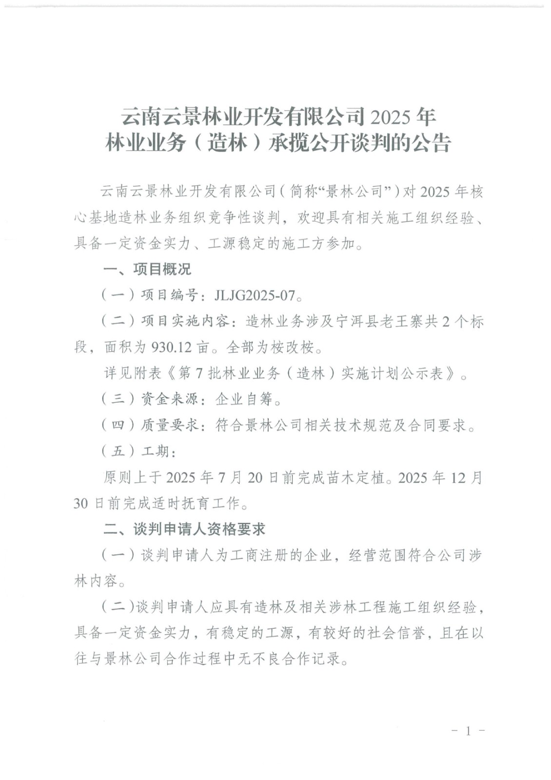 云南云景林業(yè)開(kāi)發(fā)有限公司2025年林業(yè)業(yè)務(wù)(造林)承攬公開(kāi)談判的公告