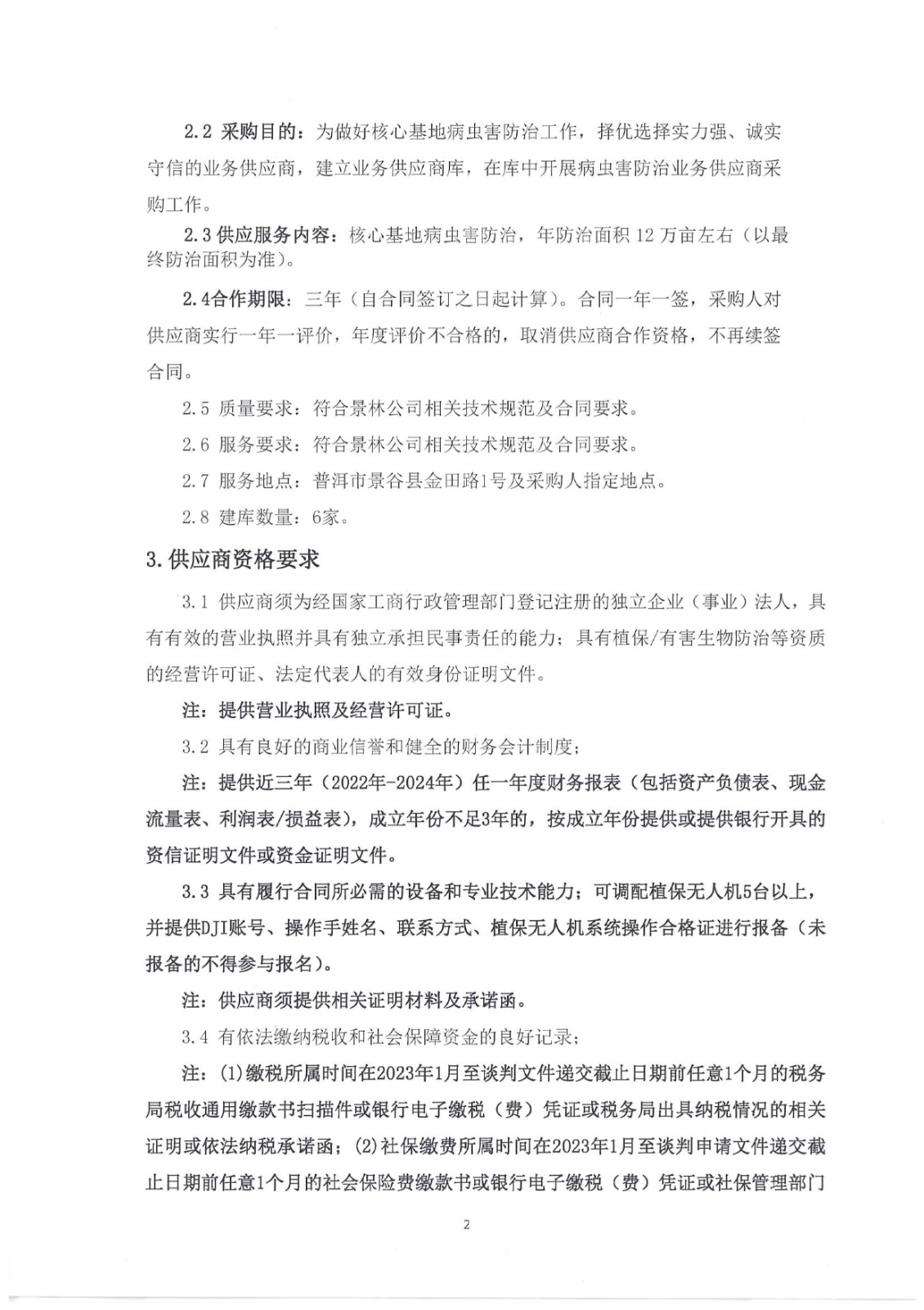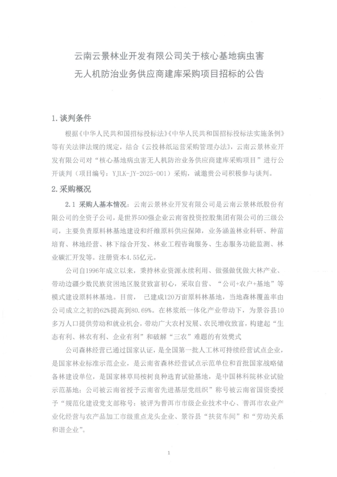 云南云景林業(yè)開發(fā)有限公司關于核心基地病蟲害無人機防治業(yè)務供應商建庫采購項目招標的公告