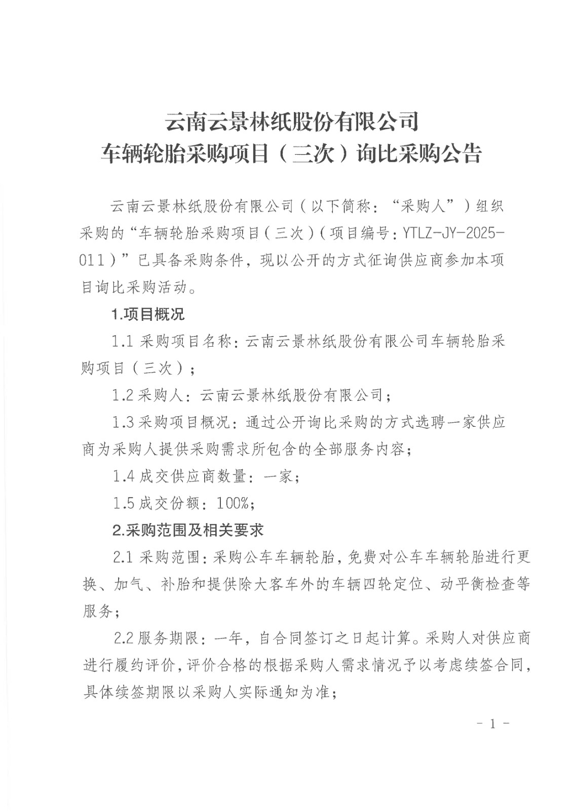 云南云景林紙股份有限公司車輛輪胎采購項(xiàng)目(三次)詢比采購公告