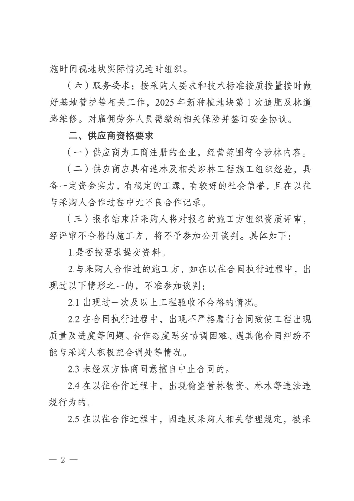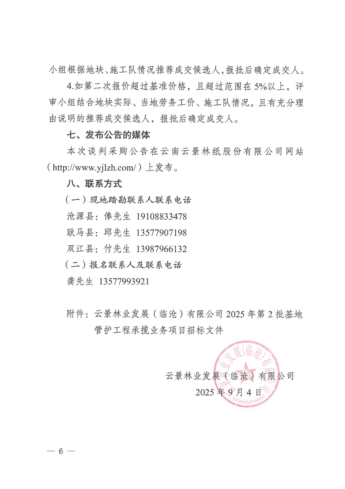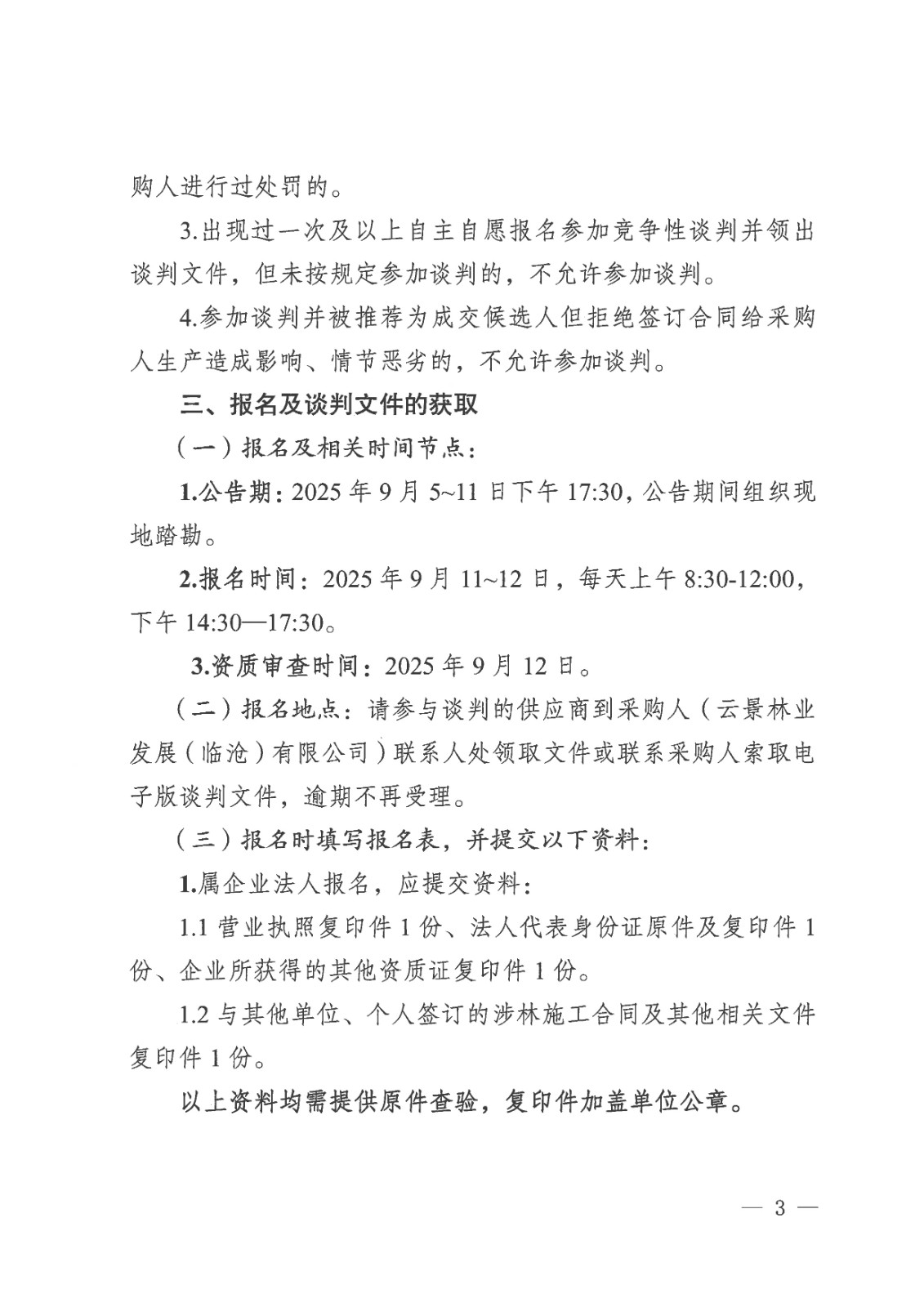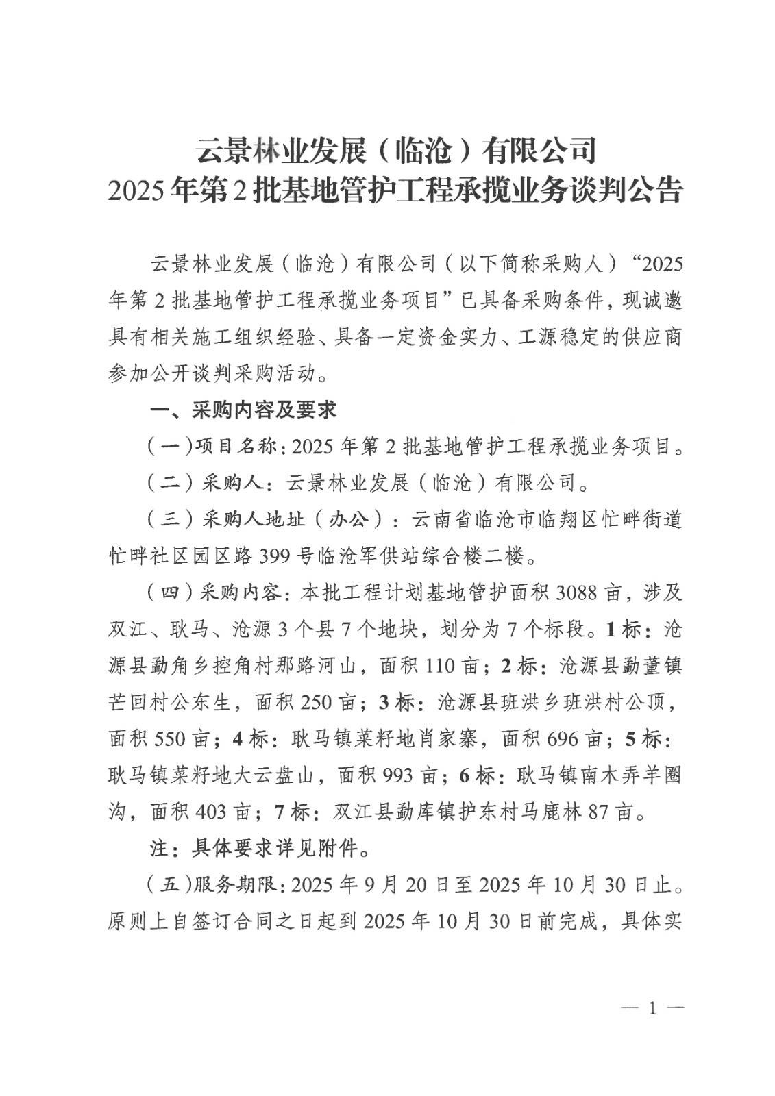 云景林業(yè)發(fā)展(臨滄)有限公司2025年第2批基地管護(hù)工程承攬業(yè)務(wù)談判公告