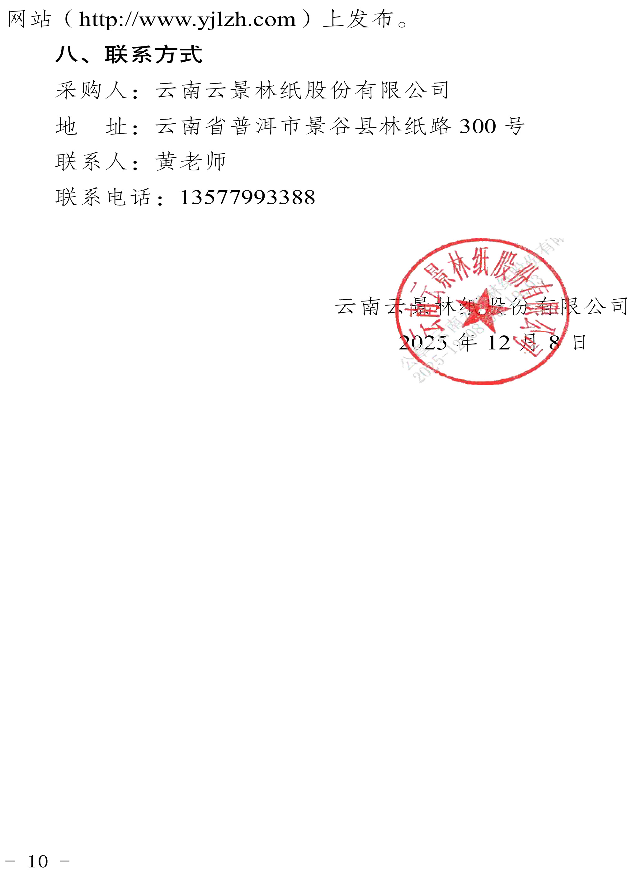 云南云景林紙股份有限公司食堂物料合格供應商人圍采購項目談判采購公告