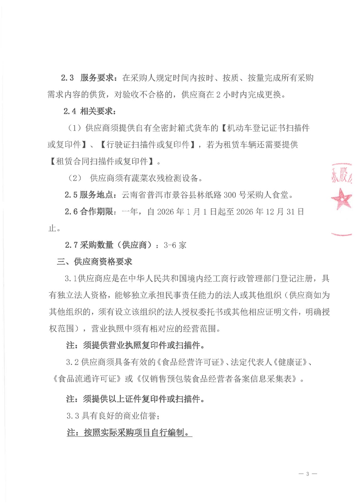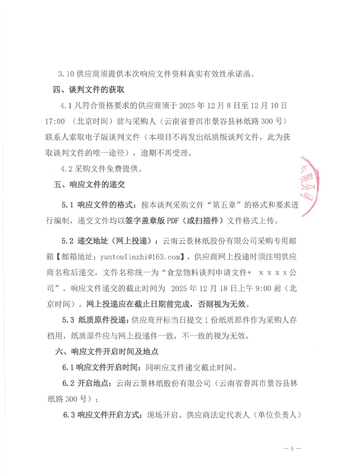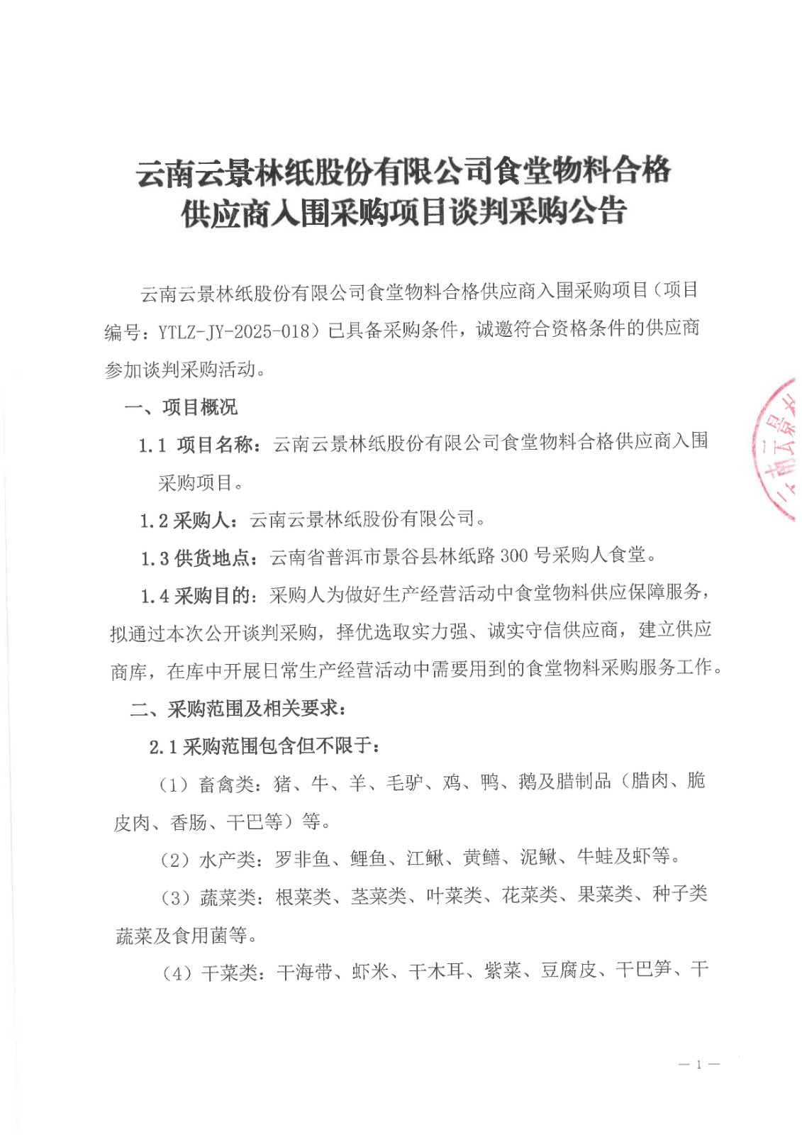 云南云景林紙股份有限公司食堂物料合格供應(yīng)商人圍采購項(xiàng)目談判采購公告